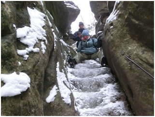 Eiszapfen an den Felsüberhängen vermittelten das